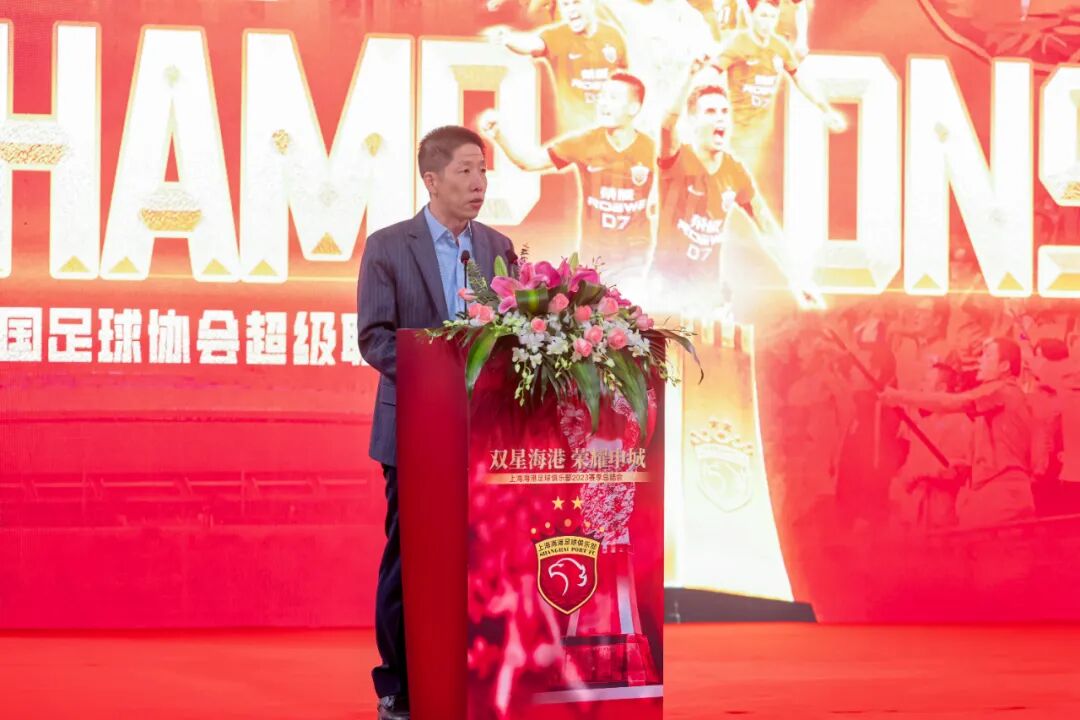上海市副市长解冬以及上海市体育局局长徐彬,带来了市委市府及市体育局对海港足球俱乐部的祝贺及慰问,徐彬在发言中强调,一个人的奋斗可以承载一段梦想,一群人的奋斗可以成就一份事业,一代人的奋斗可以创造一部历史,希望大家勿忘初心,胸怀未来,矢志奋斗,不负韶华。